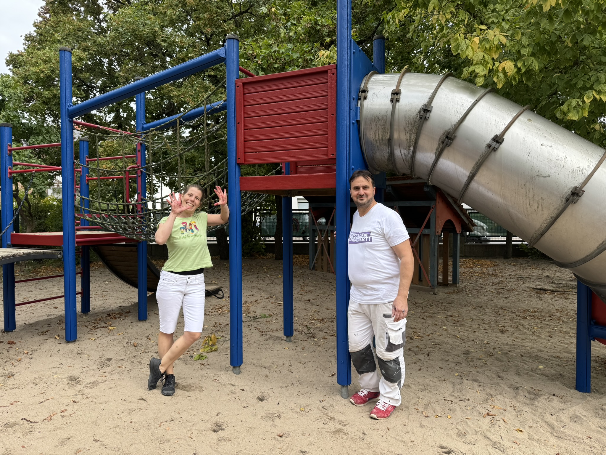 In der Aktionswoche von ”Wiesbaden engagiert“ wurden mehrere Spielgeräte auf dem Außengelände saniert.